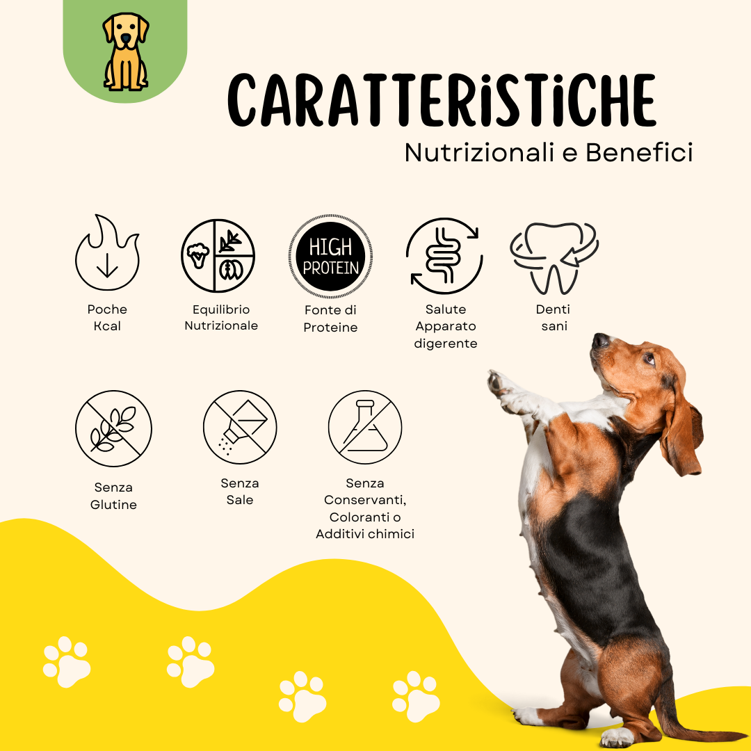 Per questo può essere offerto al cane anche come snack oltre ai pasti giornalieri.